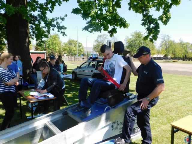 Zaprezentowany był również pokaz tresury psa służbowego. Ponadto wszyscy uczestnicy mogli skorzystać z jazdy symulatorem zderzeń. Jest to sprzęt zakupiony w ramach realizacji projektu "Bezpieczeństwo w Ruchu Drogowym KIK-76", finansowanego ze środków Szwajcarsko - Polskiego Programu Współpracy.