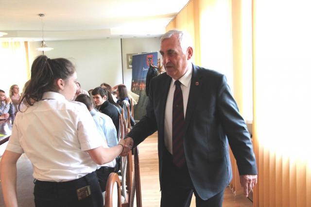 Na wstępie włodarz miasta Kazimierz Dąbrowski przywitał młodzież przybyłą wraz z opiekunami, po czym przedstawił funkcjonowanie samorządu miasta oraz administracji urzędu. Następnie nastąpiła około godzinna dyskusja nad sprawami nurtującymi młodzież, głównie z zakresu: pracy, rekreacji oraz możliwości spędzania wolnego czasu, kultury muzycznej, dróg i parkingów, a także bezdomnych zwierząt.