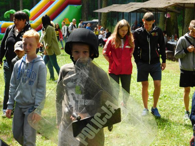 Mundurowi przedstawili założenia konkursu "Filmowy przeWodnik", realizowanego w ramach "Kręci mnie bezpieczeństwo", objętego honorowym patronatem przez ministra spraw wewnętrznych i administracji. Spotkanie cieszyło się ogromnym zainteresowaniem wśród dzieci. Podczas pikniku rodzice oraz funkcjonariusze służb mundurowych uczestniczyli w akcji oddawania krwi.