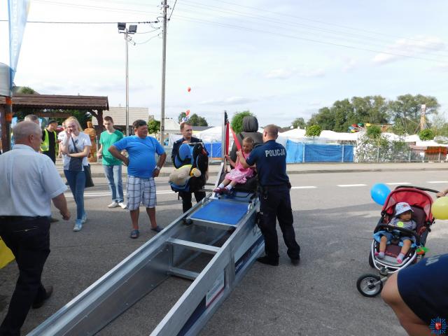 Ponadto spotkanie z uczestnikami dożynek cieszyło się dużym zainteresowaniem z zakresu służby w Policji, co przełożyło się na promocję zawodu policjanta. Mundurowi wręczali również uczestnikom spotkania elementy odblaskowe.
