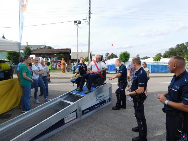 Funkcjonariusze z Komendy Powiatowej Policji w Zambrowie podczas dożynek w Szumowie, edukowali uczestników na temat bezpiecznych zachowań na drodze oraz promowali zawód policjanta. Spotkanie policjantów z mieszkańcami cieszyło się dużym zainteresowaniem.