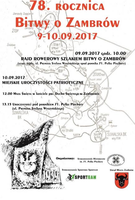 10 września (niedziela) o godz. 12.00 msza święta w kościele w pw. Ducha Świętego w Zambrowie. Tuż po mszy świętej dalsza część uroczystości odbędzie się pod pomnikiem 71 Pułku Piechoty.