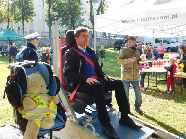 30 września mundurowi z Wydziałów Ruchu Drogowego Komendy Wojewódzkiej Policji i Komendy Powiatowej Policji w Zambrowie uczestniczyli w działaniach profilaktycznych przeprowadzonych na terenach zielonych przy Parafii pw. Trójcy Przenajświętszej z wykorzystaniem symulatora zderzeń. Urządzenie to pozwala na poznanie wrażeń porównywalnych z uderzeniem pojazdem w przeszkodę z prędkością około 10 km/h i uświadamia kierowcom, jak ważne jest zapinanie pasów bezpieczeństwa przez wszystkich podróżujących pojazdem oraz przewożenie dzieci w specjalnych fotelikach ochronnych. Osoby, które skorzystały z tej "przejażdżki" zgodnie stwierdziły, że wrażenie jest "piorunujące" i że to doświadczenie przekonuje ich do bezwzględnego zapinania pasów bezpieczeństwa zanim pojazd ruszy. Działania były także dobrą okazją dla kierujących do rozmowy z policjantami drogówki na temat aktualnie obowiązujących przepisów. Młodsi uczestnicy pikniku otrzymali materiały edukacyjne oraz elementy odblaskowe.