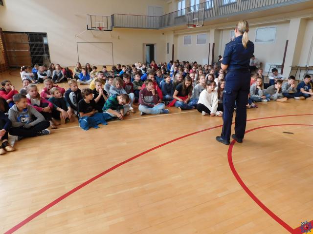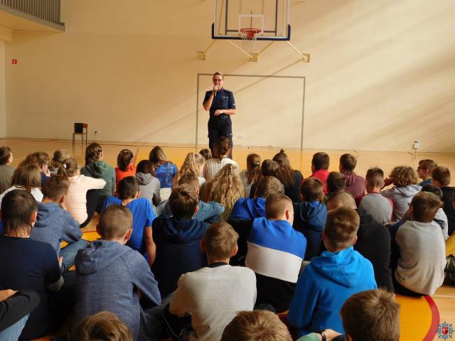 Wczoraj zambrowscy funkcjonariusze i pracownicy Komendy Powiatowej Policji w Zambrowie w ramach realizowanych działań informacyjno-edukacyjnych pod hasłem "Kreci mnie bezpieczeństwo....przez cały rok szkolny", w związku z obchodami Międzynarodowego Dnia Bez Przemocy przypadającym na dzień 2 października 2017 roku, spotkali się z uczniami i nauczycielami klas VI i VII w Szkole podstawowej Nr 5 w Zambrowie. Ze słuchaczami omówiono co to znaczy "przemoc" i jakie są formy jej stosowania, poruszono problematykę przemocy rówieśniczej. Mundurowi wyjaśnili jakie zachowania są niezgodne z prawem, omówili zagadnienia związane z odpowiedzialnością prawną nieletnich za popełniane czyny karalne, czyny zabronione. Wyjaśnili jakie zachowania są niezgodne z obowiązującymi normami społecznymi. Policjanci przedstawili również zagrożenia związane z korzystaniem z Internetu, w tym stosowanie cyberprzepocy. Młodzi słuchacze z zaciekawieniem wysłuchali przygotowanej przez mundurowych prelekcji.