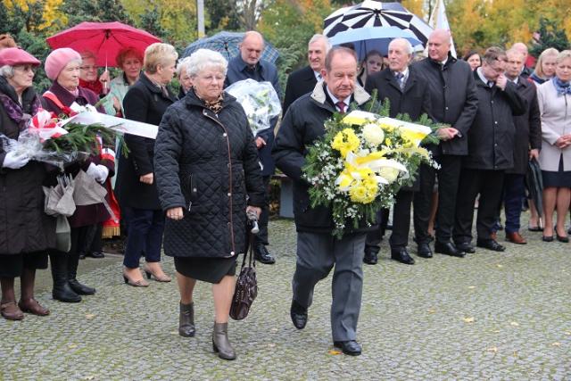 Tuż po homilii wszyscy zebrani udali się pod pomnikiem świętego Jana Pawła II. Ta część uroczystości rozpoczęła się od zagrania Hymnu Watykańskiego przez Miejską Młodzieżową Orkiestrę Dętą w Zambrowie pod batutą kapelmistrza Krzysztofa Witkowskiego. Następnie poszczególne delegacje złożyły kwiaty i wieńce. Wartę pod pomnikiem wystawiła: III Zambrowska Drużyna Harcerska "Grota" oraz IV Zambrowska Gromada Zuchowa "Leśne Skrzaty" działająca przy Szkole Podstawowej nr 4 w Zambrowie prowadzona przez Panią podharcmistrz Elżbietę Glińską.