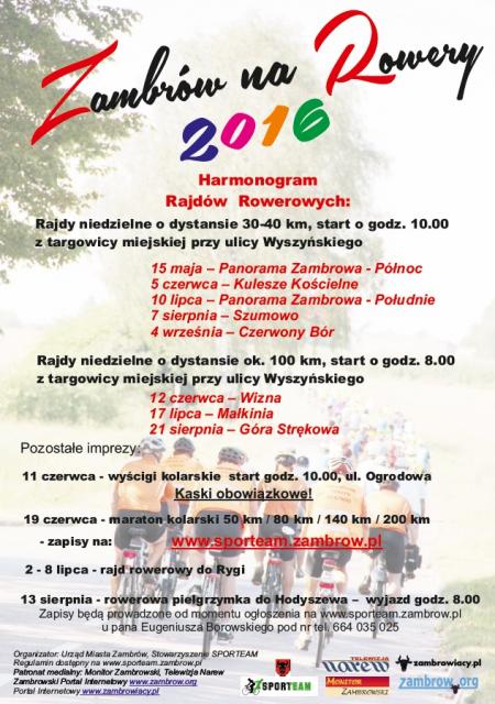 Harmonogram akcji ZAMBRÓW NA ROWERY 2016