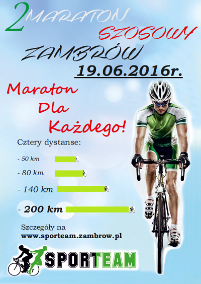 19 czerwca po raz drugi w Zambrowie i całym regionie odbędzie się Maraton Szosowy - impreza o zasięgu ogólnopolskim organizowana przez Stowarzyszenie sporotowo-rekreacyjne SPORTEAM.