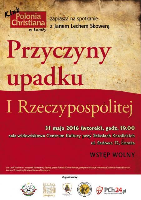 Klub "Polonia Christiana" zaprasza na spotkanie z ks. Janem Lechem Skowerą.