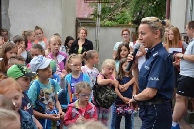 Zambrowscy mundurowi dbają o bezpieczeństwo uczestników półkolonii zorganizowanych przez parafię Trójcy Przenajświętszej w Zambrowie przypominając o bezpiecznych zachowaniach w okresie wakacji.