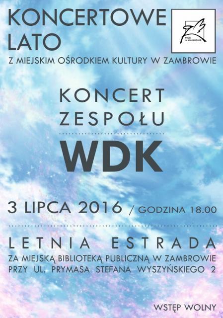 Dyrektor Miejskiego Ośrodka Kultury w Zambrowie serdecznie zaprasza na Koncert zespołu WDK w wykonaniu WDK - Wiele Doznań Kulturalnych.