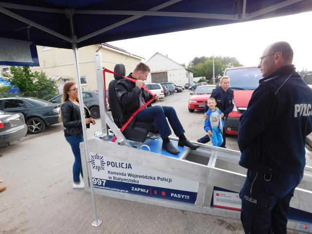 Dzięki urządzeniu chętni mogli sprawdzić, jak ważne jest zapinanie pasów bezpieczeństwa podczas jazdy. W związku trwającym okresem wakacji funkcjonariusze wygłosili prelekcję dotyczącą bezpieczeństwa podczas letniego wypoczynku, gdzie apelowali o rozwagę i zachowanie zdrowego rozsądku w czasie spędzania wolnego czasu nad wodą.