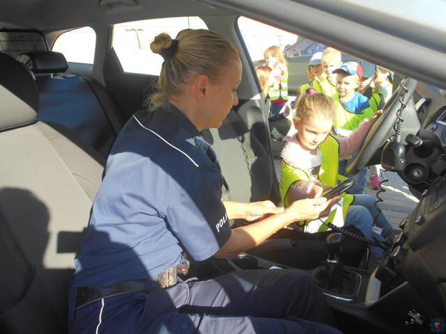 Najmłodsi uczniowie zwiedzili również pomieszczenia budynku. Mogły też zasiąść za kierownicą radiowozu. Największym zainteresowaniem cieszyło się używanie sygnałów dźwiękowych. Na zakończenie mundurowi przypomnieli dzieciom o zasadach bezpiecznego poruszania się po drogach w trakcie pokonywania codziennej drogi do przedszkola oraz wręczyli elementy odblaskowe.