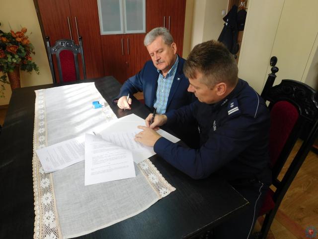 Komendant Powiatowy Policji w Zambrowie mł. insp. Andrzej Puchalski i Dyrektor Zespołu Szkół Agroprzedsiębiorczości w Zambrowie mgr inż. Jan Zakrzewski, podpisali porozumienie dotyczące współpracy przy wspólnej realizacji zadań.