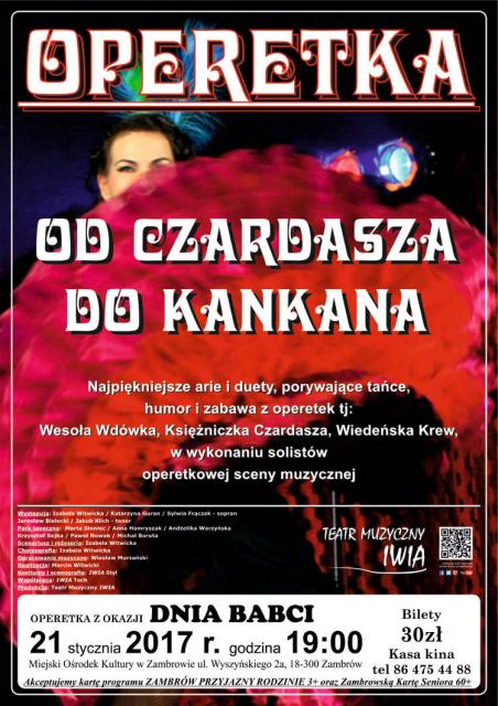 Dyrektor Miejskiego Ośrodka Kultury w Zambrowie serdecznie zaprasza na Operetkę -Od czardasza do kankana z okazji Dnia Babci i dziadka.