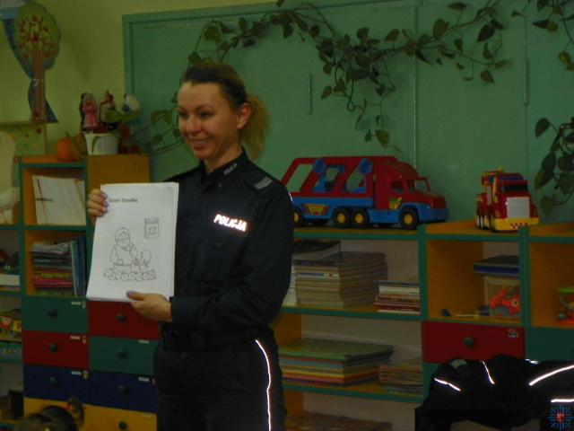 Zambrowscy policjanci, w ramach programu "Bezpieczne ferie" odwiedzili dzieci w przedszkolach w powiecie zambrowskim. W trakcie wizyty funkcjonariusze rozmawiali z dziećmi o ich bezpieczeństwie podczas zimowych zabaw. Szczególną uwagę zwrócono na niebezpieczeństwo zabaw na zamarzniętych zbiornikach wodnych. Dzieci wykazały się znajomością numerów telefonów alarmowych. Funkcjonariusze omówili podstawowe zasady bezpieczeństwa w ruchu drogowym, o konieczności używania pasów bezpieczeństwa podczas podróży oraz jak ważne jest noszenie elementów odblaskowych przez pieszych. Uczestnikom spotkania przekazano materiały edukacyjne - kolorowanki z ostrzeżeniem przed oszustami, omawiając zasady szacunku do osób starszych i bezpieczeństwa ich dziadków.