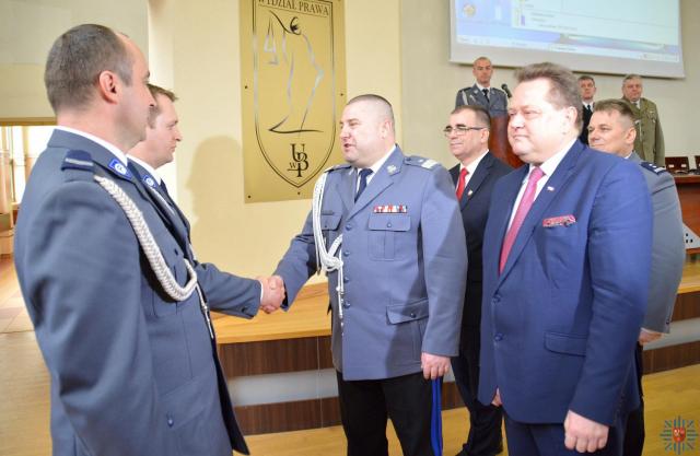 Sekretarz Stanu w Ministerstwie Spraw Wewnętrznych i Administracji Jarosław Zieliński podczas inauguracji Forum Klas Mundurowych Województwa Podlaskiego 2017 wyróżnił dwóch funkcjonariuszy z Komendy Powiatowej Policji w Zambrowie.