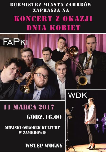 Burmistrz Miasta Zambrów zaprasza wszystkie panie na koncert z okazji Dnia Kobiet.