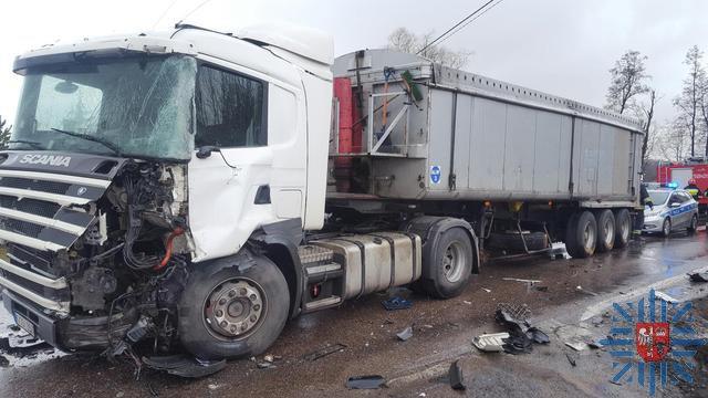 W poniedziałek około godziny 11:40 w rejonie skrzyżowania w miejscowości Przeździecko - Mroczki w drogą prowadzącą do miejscowości Tarnowo Goski, obywatel Litwy jadący w kierunku Czyżewa, samochodem ciężarowym marki Scania, nie dostosował prędkości do warunków panujących na drodze, uderzył w tył samochodu osobowego marki Opel Omega, po czym zjechał na przeciwny pas ruchu i zderzył się w jadącym w kierunku Zambrowa pojazdem ciężarowym marki Daf.