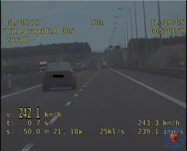 Policjanci zambrowskiej drogówki zatrzymali do kontroli kierowcę BMW. Mężczyzna jechał z prędkością 242 km/h, przy dozwolonej prędkości 100 km/h. Wraz z nim podróżowała żona i dwójka małoletnich dzieci.
