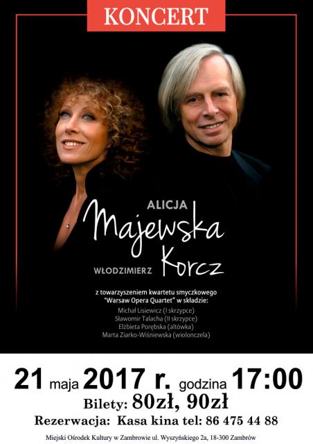 21 maja na scenie Miejskiego Ośrodka Kultury wystąpi Alicja Majewska i Włodzimierz Korcz.